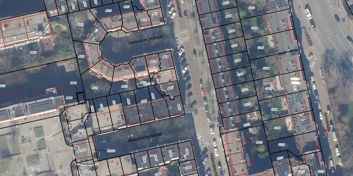 Holendrechtstraat 40-H is gelegen op kadastraal perceel ASD18V4447. Deze kadastrale aanduiding is uniek en wordt gebruikt door het Kadaster om eigendomsrechten en andere zakelijke rechten vast te leggen. Het perceel maakt onderdeel uit van de kadastrale gemeente Amsterdam.