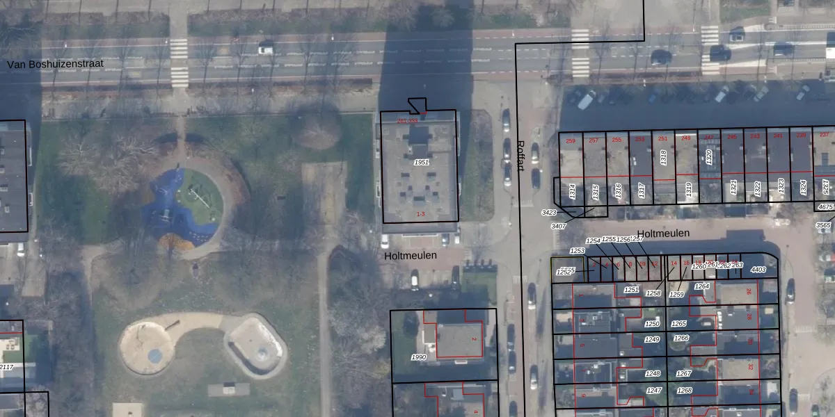 Het perceel waarop Holtmeulen 1 staat heeft een oppervlakte van 491 m². Dit is een groot perceel. De perceeloppervlakte wordt geregistreerd door het Kadaster. Gedetailleerde informatie over de maten van dit perceel kunt u vinden in het rapport Kadastrale kaart met maatvoering van Holtmeulen 1.