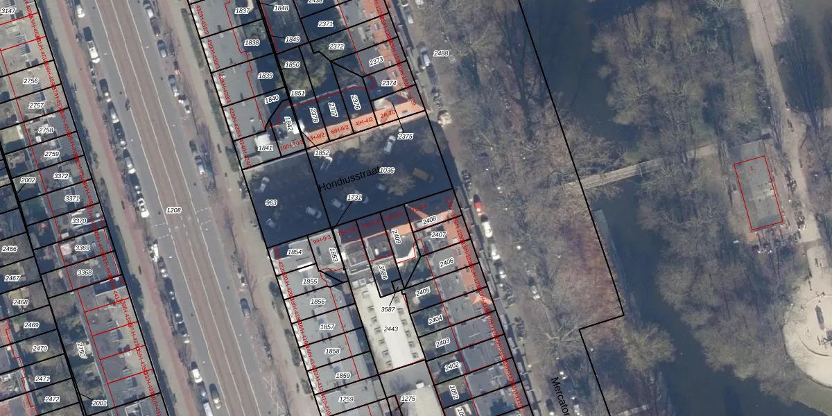 Het perceel waarop Hondiusstraat 1-4 staat heeft een oppervlakte van 79 m². Dit is een klein perceel. De perceeloppervlakte wordt geregistreerd door het Kadaster. Gedetailleerde informatie over de maten van dit perceel kunt u vinden in het rapport Kadastrale kaart met maatvoering van Hondiusstraat 1-4.