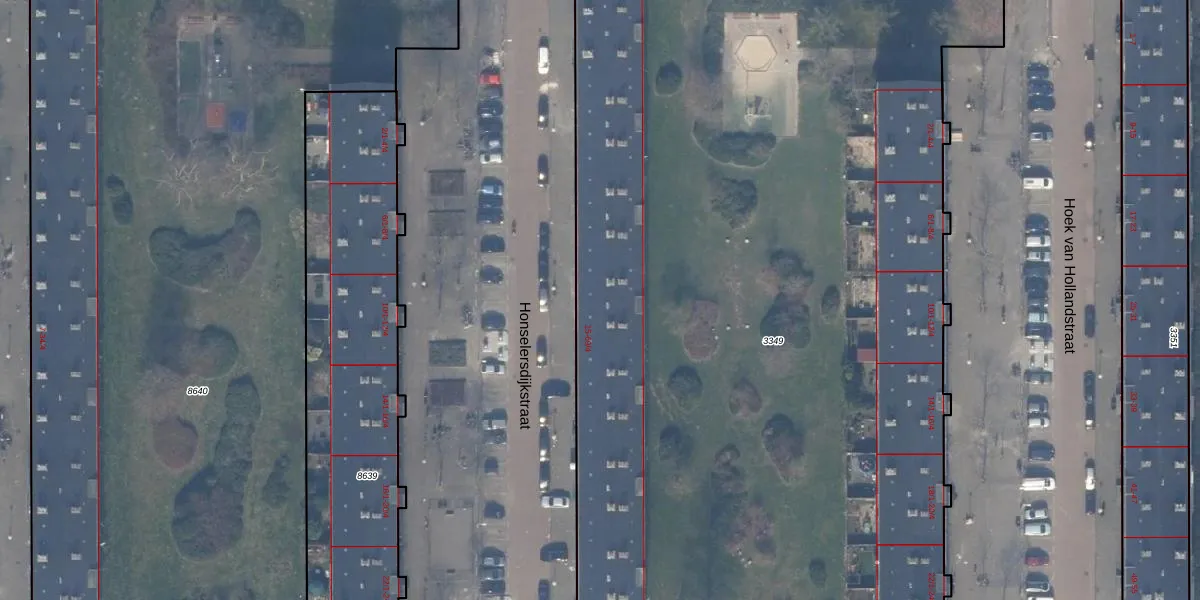 Het perceel waarop Honselersdijkstraat 39-4 staat heeft een oppervlakte van 9654 m². Dit is een zeer groot perceel. De perceeloppervlakte wordt geregistreerd door het Kadaster. Gedetailleerde informatie over de maten van dit perceel kunt u vinden in het rapport Kadastrale kaart met maatvoering van Honselersdijkstraat 39-4.