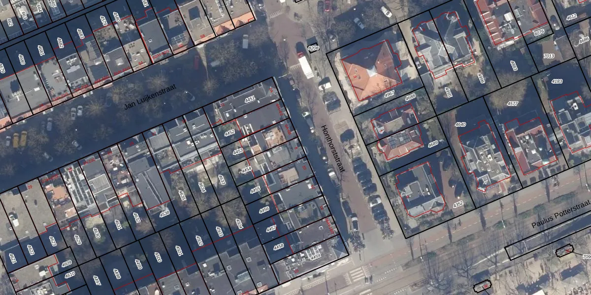 Het perceel waarop Honthorststraat 8-C staat heeft een oppervlakte van 184 m². Dit is een middelgroot perceel. De perceeloppervlakte wordt geregistreerd door het Kadaster. Gedetailleerde informatie over de maten van dit perceel kunt u vinden in het rapport Kadastrale kaart met maatvoering van Honthorststraat 8-C.
