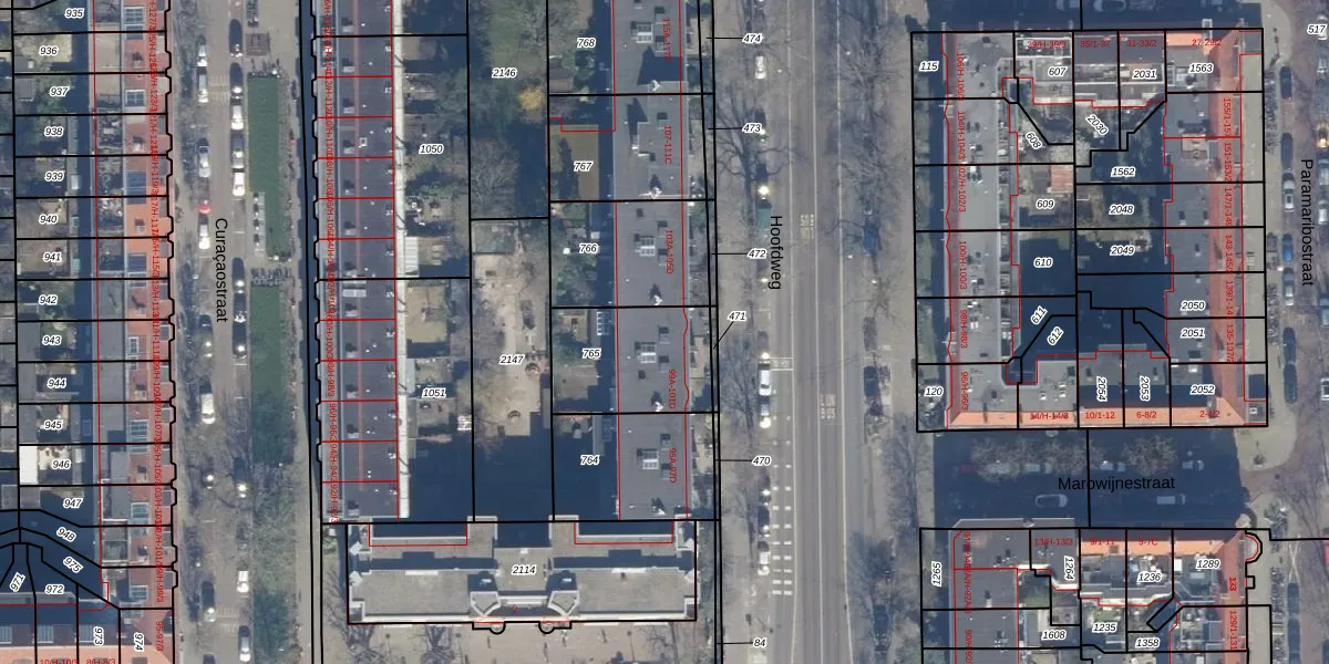 Het perceel waarop Hoofdweg 101-D staat heeft een oppervlakte van 390 m². Dit is een groot perceel. De perceeloppervlakte wordt geregistreerd door het Kadaster. Gedetailleerde informatie over de maten van dit perceel kunt u vinden in het rapport Kadastrale kaart met maatvoering van Hoofdweg 101-D.