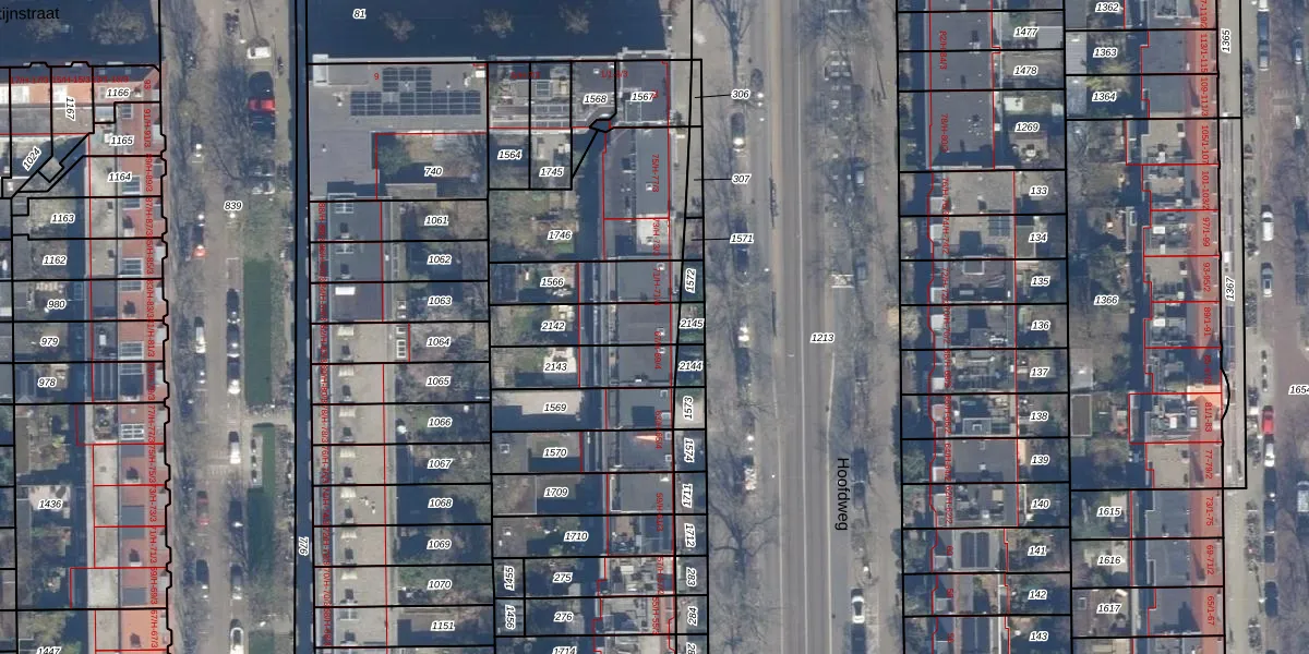 Het perceel waarop Hoofdweg 69-1 staat heeft een oppervlakte van 185 m². Dit is een middelgroot perceel. De perceeloppervlakte wordt geregistreerd door het Kadaster. Gedetailleerde informatie over de maten van dit perceel kunt u vinden in het rapport Kadastrale kaart met maatvoering van Hoofdweg 69-1.