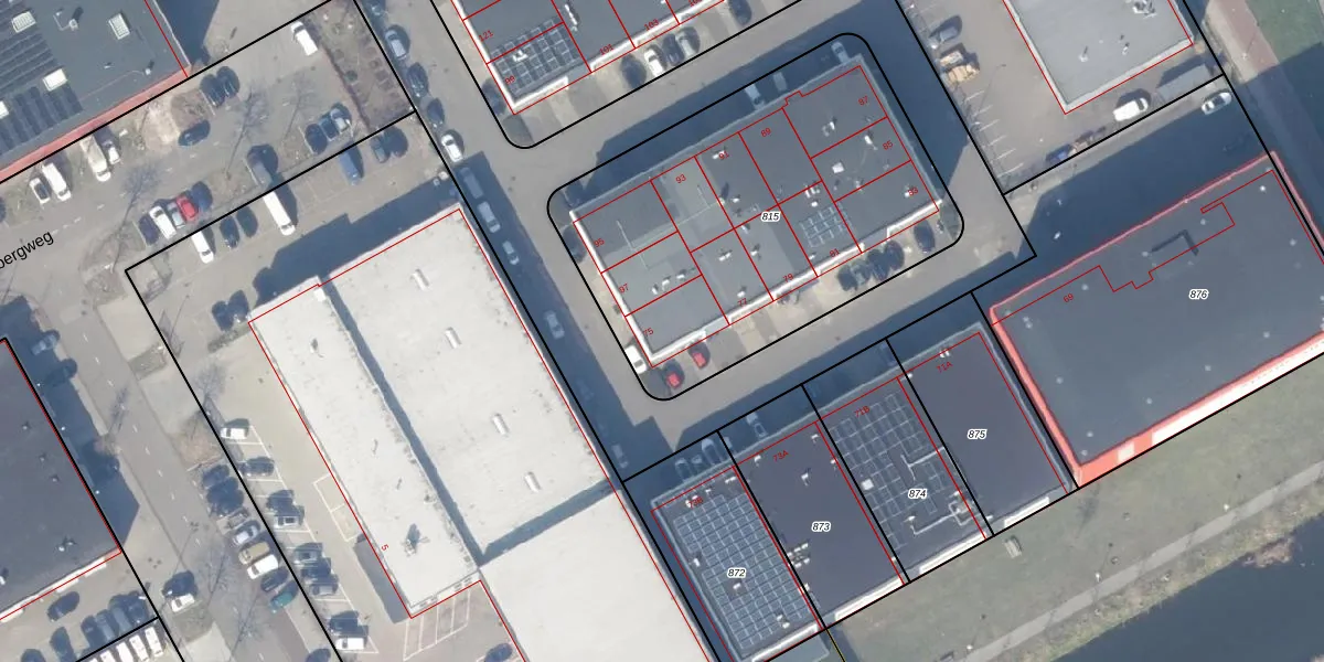 Het perceel waarop Hoogoorddreef 75 staat heeft een oppervlakte van 1955 m². Dit is een zeer groot perceel. De perceeloppervlakte wordt geregistreerd door het Kadaster. Gedetailleerde informatie over de maten van dit perceel kunt u vinden in het rapport Kadastrale kaart met maatvoering van Hoogoorddreef 75.