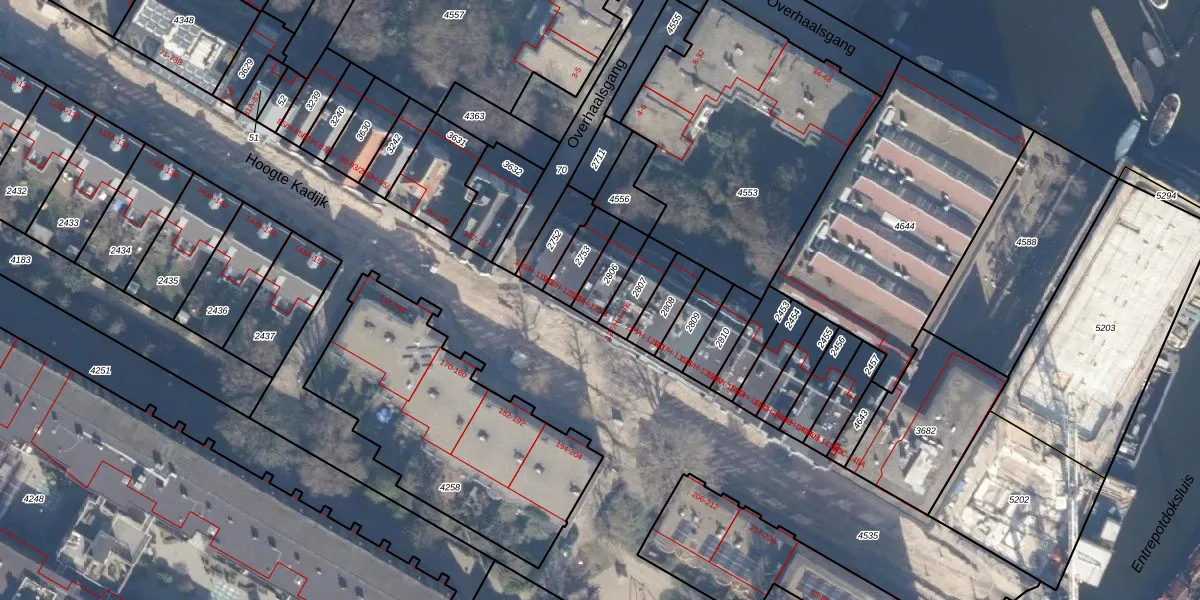 Het adres is gelegen op perceel 2806 in de sectie O en de kadastrale gemeente Amsterdam. De kadastrale aanduiding is aldus ASD11-O-2806. Het perceel is kleiner dan gemiddeld in Amsterdam. Het perceel is 92 m² groot, terwijl het gemiddelde ligt op 781,11 m². De grootste perceeloppervlakte in de kadastrale gemeente is 12,0 ha. De kleinste oppervlakte bedraagt 1 m². Op het perceel zijn 3 adressen aanwezig. In de Basisregistratie Kadaster (BRK) werden de grenzen van het perceel geregistreerd op 17-11-2006.