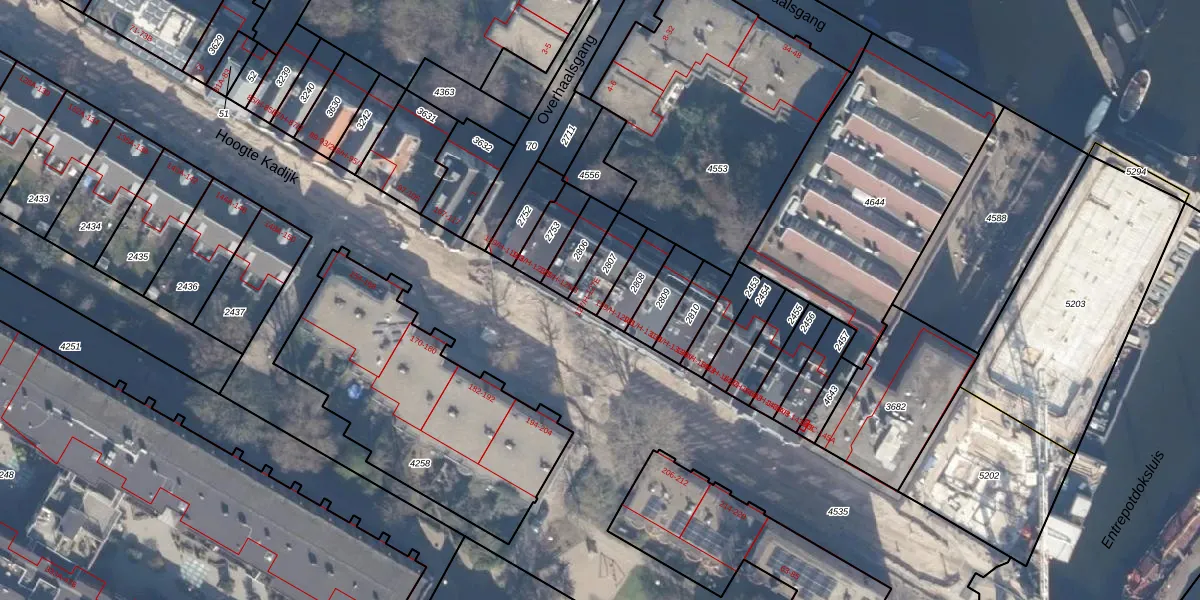 Het adres is gelegen op perceel 2807 in de sectie O en de kadastrale gemeente Amsterdam. De kadastrale aanduiding is aldus ASD11-O-2807. Het perceel is 91 m² groot. Dat is kleiner dan de gemiddelde perceeloppervlakte in Amsterdam, dat op 781,11 m² ligt. Het kleinste perceel in de kadastrale gemeente is 1 m² groot. De grootste perceeloppervlakte is 12,0 ha. Op het perceel liggen in totaal 5 adressen. De huidige grenzen van het perceel zijn digitaal in de Basisregistratie Kadaster (BRK) geregistreerd op 17-11-2006.