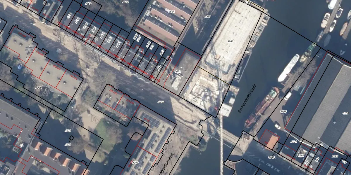 Het adres is gelegen op perceel 3682 in de sectie O en de kadastrale gemeente Amsterdam. De kadastrale aanduiding is aldus ASD11-O-3682. Het perceel is kleiner dan gemiddeld in Amsterdam. Het perceel is 440 m² groot, terwijl het gemiddelde ligt op 781,11 m². Het kleinste perceel in de kadastrale gemeente is 1 m² groot. De grootste perceeloppervlakte is 12,0 ha. Er zijn geen andere adressen aanwezig op het perceel. De laatste wijziging in het de Basisregistratie Kadaster (BRK) was op 11-01-2018.