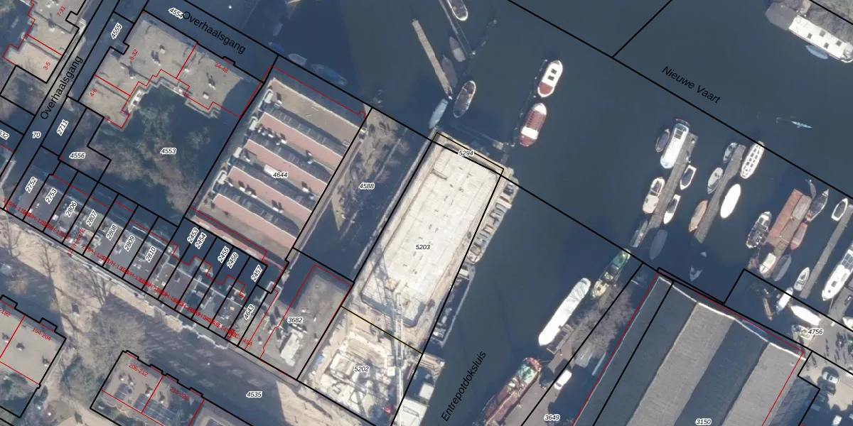 Het adres is gelegen op perceel 5203 in de sectie O en de kadastrale gemeente Amsterdam. De kadastrale aanduiding is aldus ASD11-O-5203. De gemiddelde perceeloppervlakte in de kadastrale gemeente Amsterdam is 781,11 m². Dit perceel is met zijn 855 m² dus groter dan gemiddeld. De grootste perceeloppervlakte in de kadastrale gemeente is 12,0 ha. De kleinste oppervlakte bedraagt 1 m². Op het perceel liggen in totaal 87 adressen. De huidige grenzen van het perceel zijn digitaal in de Basisregistratie Kadaster (BRK) geregistreerd op 11-01-2018.