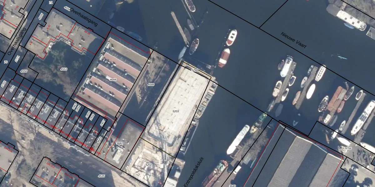 Het adres is gelegen op perceel 5203 in de sectie O en de kadastrale gemeente Amsterdam. De kadastrale aanduiding is aldus ASD11-O-5203. De gemiddelde perceeloppervlakte in de kadastrale gemeente Amsterdam is 781,11 m². Dit perceel is met zijn 855 m² dus groter dan gemiddeld. Het grootste perceel in de kadastrale gemeente is 12,0 ha. Het kleinste perceel heeft een oppervlakte van 1 m². Er zijn 87 adressen aanwezig op het perceel. De laatste wijziging in het de Basisregistratie Kadaster (BRK) was op 11-01-2018.