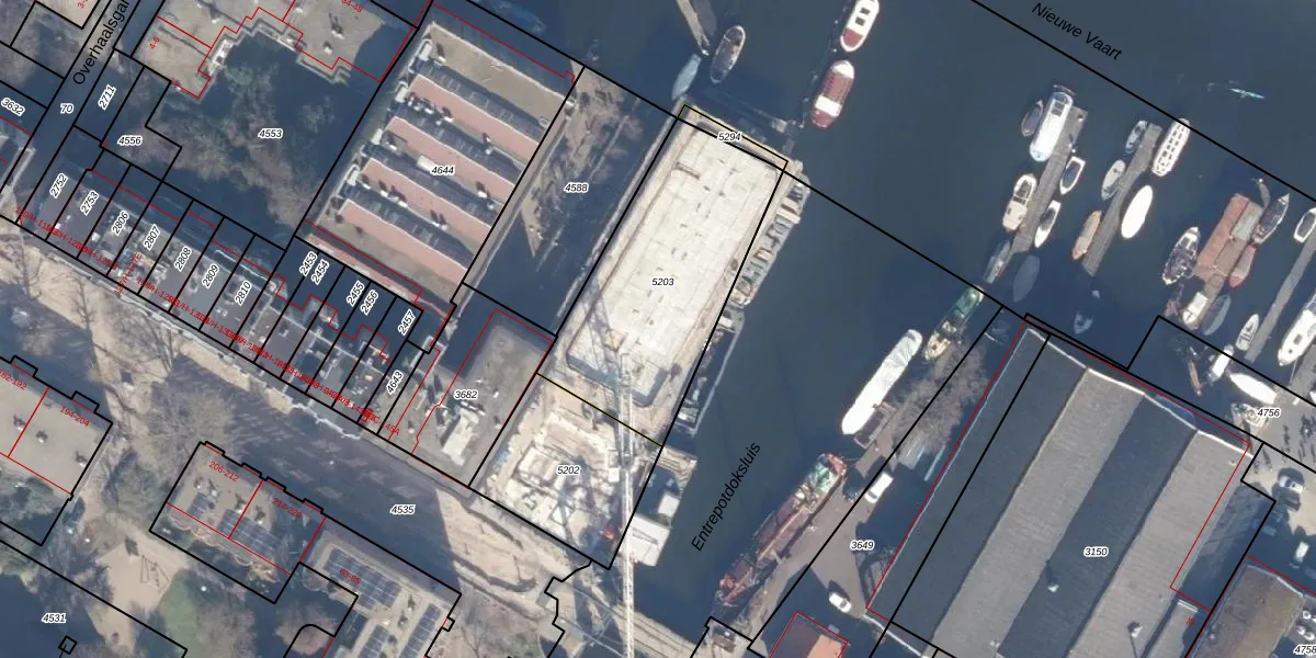 Het adres is gelegen op perceel 5203 in de sectie O en de kadastrale gemeente Amsterdam. De kadastrale aanduiding is aldus ASD11-O-5203. De gemiddelde perceeloppervlakte in de kadastrale gemeente Amsterdam is 781,11 m². Dit perceel is met zijn 855 m² dus groter dan gemiddeld. Het grootste perceel in de kadastrale gemeente is 12,0 ha. Het kleinste perceel heeft een oppervlakte van 1 m². Op het perceel liggen in totaal 87 adressen. De huidige grenzen van het perceel zijn digitaal in de Basisregistratie Kadaster (BRK) geregistreerd op 11-01-2018.