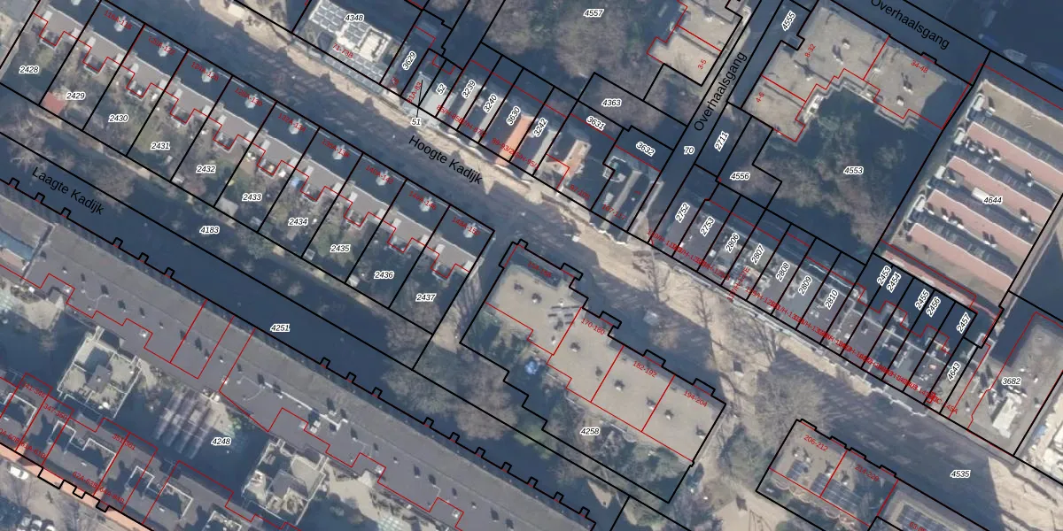 Hoogte Kadijk 154 is gelegen op kadastraal perceel ASD11O4258. Deze kadastrale aanduiding is uniek en wordt gebruikt door het Kadaster om eigendomsrechten en andere zakelijke rechten vast te leggen. Het perceel maakt onderdeel uit van de kadastrale gemeente Amsterdam.