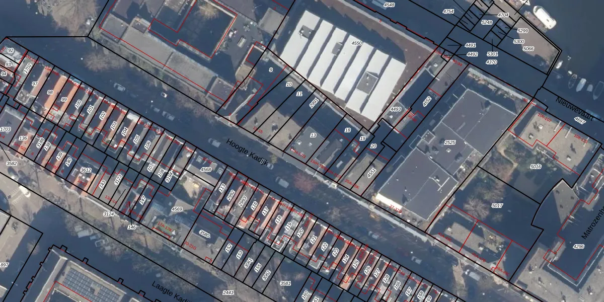Het perceel waarop Hoogte Kadijk 17-H staat heeft een oppervlakte van 190 m². Dit is een middelgroot perceel. De perceeloppervlakte wordt geregistreerd door het Kadaster. Gedetailleerde informatie over de maten van dit perceel kunt u vinden in het rapport Kadastrale kaart met maatvoering van Hoogte Kadijk 17-H.