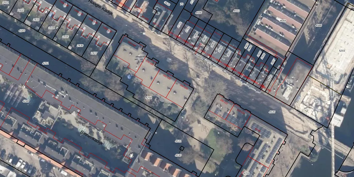 Hoogte Kadijk 196 is gelegen op kadastraal perceel ASD11O4258. Deze kadastrale aanduiding is uniek en wordt gebruikt door het Kadaster om eigendomsrechten en andere zakelijke rechten vast te leggen. Het perceel maakt onderdeel uit van de kadastrale gemeente Amsterdam.