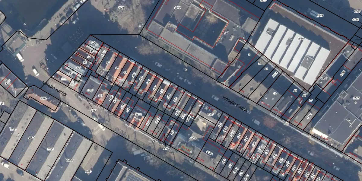 Het perceel waarop Hoogte Kadijk 22-A staat heeft een oppervlakte van 74 m². Dit is een klein perceel. De perceeloppervlakte wordt geregistreerd door het Kadaster. Gedetailleerde informatie over de maten van dit perceel kunt u vinden in het rapport Kadastrale kaart met maatvoering van Hoogte Kadijk 22-A.