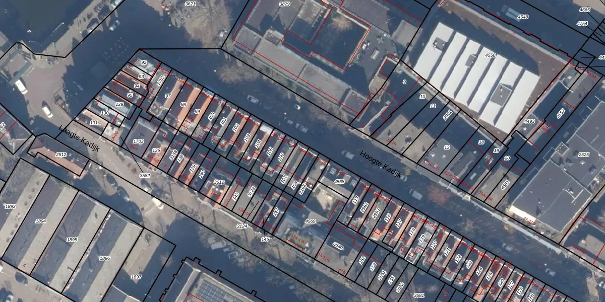 Het perceel waarop Hoogte Kadijk 24-A staat heeft een oppervlakte van 74 m². Dit is een klein perceel. De perceeloppervlakte wordt geregistreerd door het Kadaster. Gedetailleerde informatie over de maten van dit perceel kunt u vinden in het rapport Kadastrale kaart met maatvoering van Hoogte Kadijk 24-A.