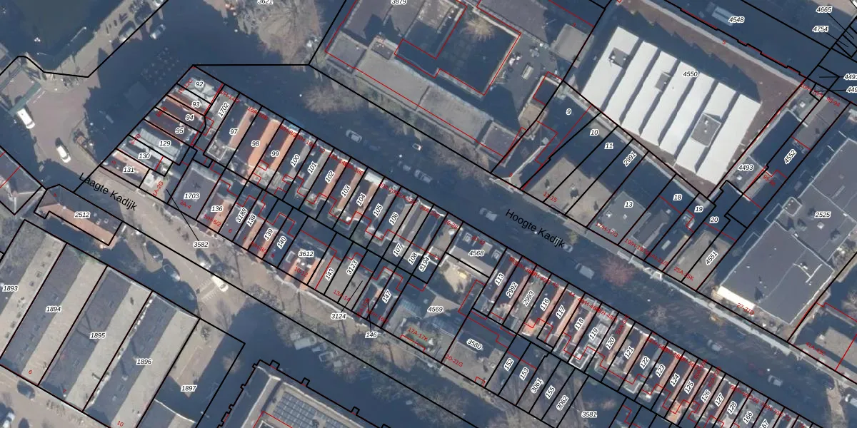 Het perceel waarop Hoogte Kadijk 24-B staat heeft een oppervlakte van 74 m². Dit is een klein perceel. De perceeloppervlakte wordt geregistreerd door het Kadaster. Gedetailleerde informatie over de maten van dit perceel kunt u vinden in het rapport Kadastrale kaart met maatvoering van Hoogte Kadijk 24-B.