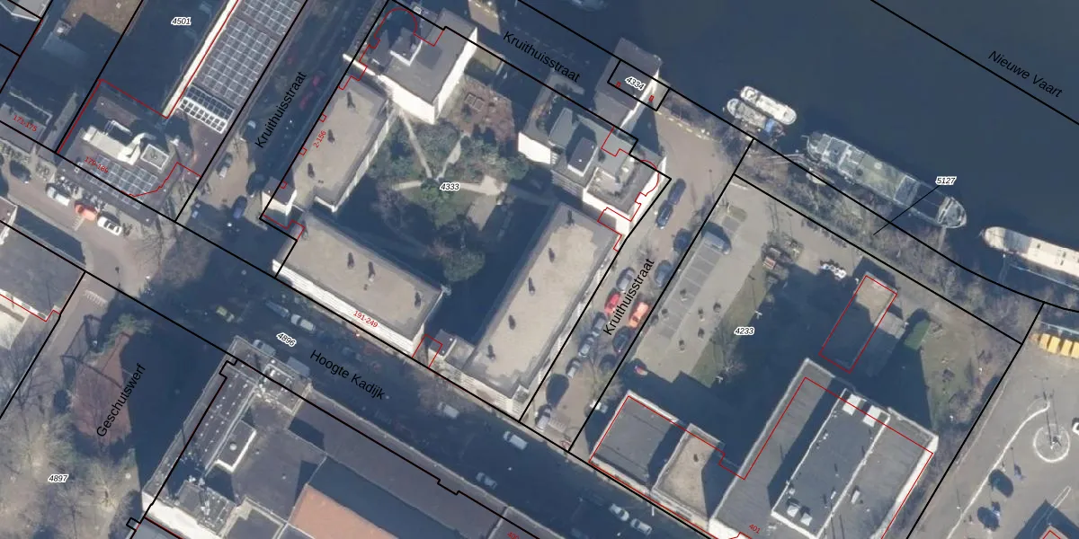 Hoogte Kadijk 243 is gelegen op kadastraal perceel ASD11O4333. Deze kadastrale aanduiding is uniek en wordt gebruikt door het Kadaster om eigendomsrechten en andere zakelijke rechten vast te leggen. Het perceel maakt onderdeel uit van de kadastrale gemeente Amsterdam.