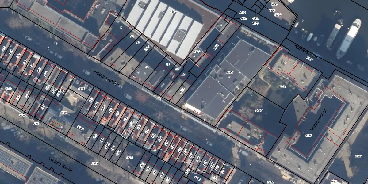 Hoogte Kadijk 25-K is gelegen op kadastraal perceel ASD11O4551. Deze kadastrale aanduiding is uniek en wordt gebruikt door het Kadaster om eigendomsrechten en andere zakelijke rechten vast te leggen. Het perceel maakt onderdeel uit van de kadastrale gemeente Amsterdam.