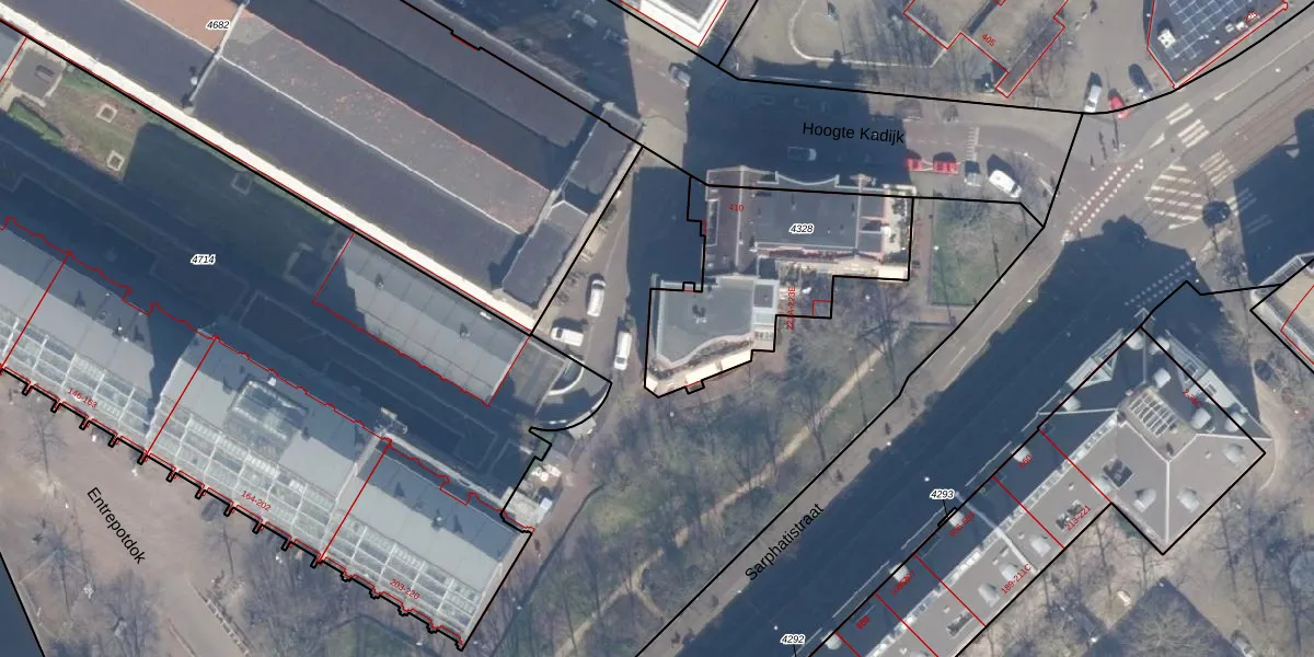Hoogte Kadijk 410 is gelegen op kadastraal perceel ASD11O4328. Deze kadastrale aanduiding is uniek en wordt gebruikt door het Kadaster om eigendomsrechten en andere zakelijke rechten vast te leggen. Het perceel maakt onderdeel uit van de kadastrale gemeente Amsterdam.