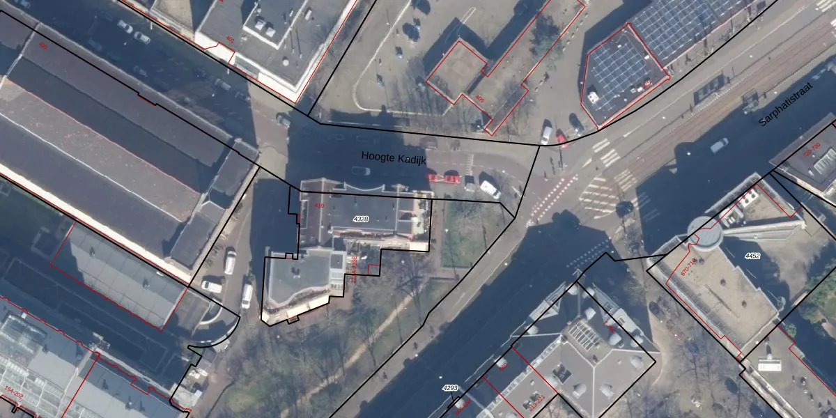 Hoogte Kadijk 418 is gelegen op kadastraal perceel ASD11O4328. Deze kadastrale aanduiding is uniek en wordt gebruikt door het Kadaster om eigendomsrechten en andere zakelijke rechten vast te leggen. Het perceel maakt onderdeel uit van de kadastrale gemeente Amsterdam.