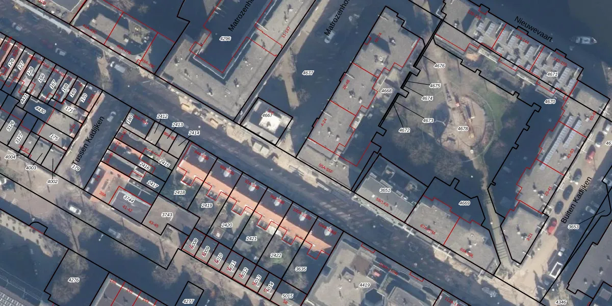 Hoogte Kadijk 55-E is gelegen op kadastraal perceel ASD11O4668. Deze kadastrale aanduiding is uniek en wordt gebruikt door het Kadaster om eigendomsrechten en andere zakelijke rechten vast te leggen. Het perceel maakt onderdeel uit van de kadastrale gemeente Amsterdam.
