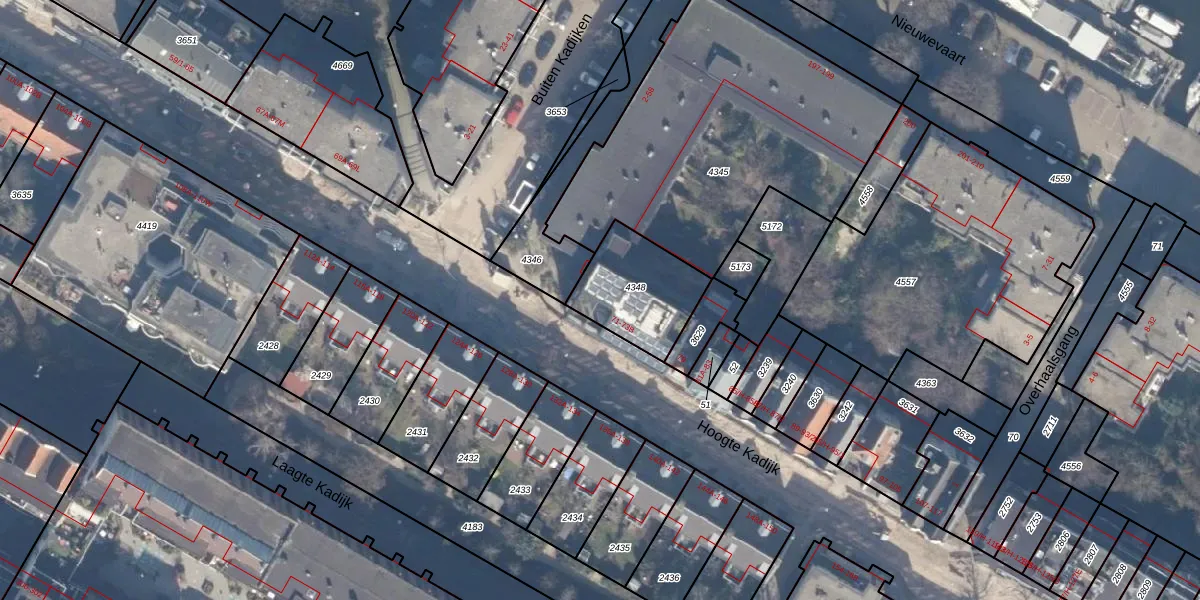 Hoogte Kadijk 71-E is gelegen op kadastraal perceel ASD11O4348. Deze kadastrale aanduiding is uniek en wordt gebruikt door het Kadaster om eigendomsrechten en andere zakelijke rechten vast te leggen. Het perceel maakt onderdeel uit van de kadastrale gemeente Amsterdam.
