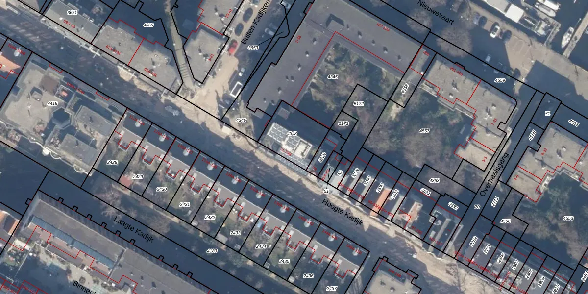Hoogte Kadijk 73-B is gelegen op kadastraal perceel ASD11O4348. Deze kadastrale aanduiding is uniek en wordt gebruikt door het Kadaster om eigendomsrechten en andere zakelijke rechten vast te leggen. Het perceel maakt onderdeel uit van de kadastrale gemeente Amsterdam.