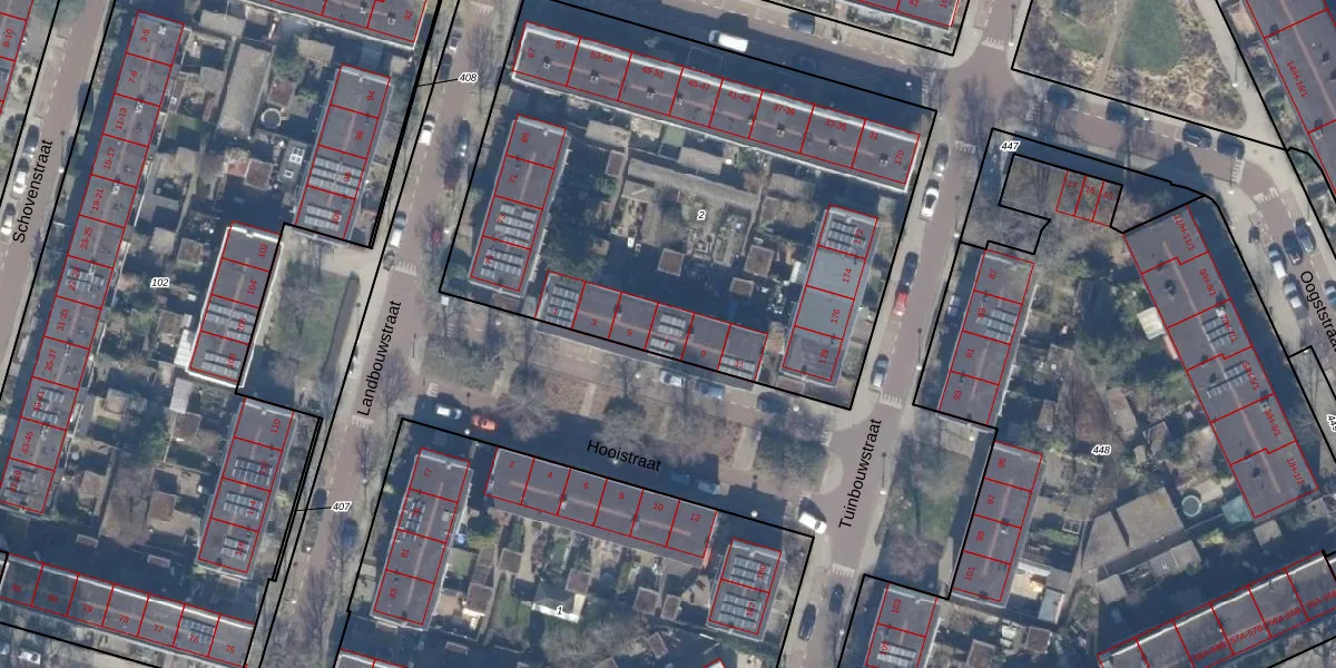 Het perceel waarop Hooistraat 7 staat heeft een oppervlakte van 2954 m². Dit is een zeer groot perceel. De perceeloppervlakte wordt geregistreerd door het Kadaster. Gedetailleerde informatie over de maten van dit perceel kunt u vinden in het rapport Kadastrale kaart met maatvoering van Hooistraat 7.