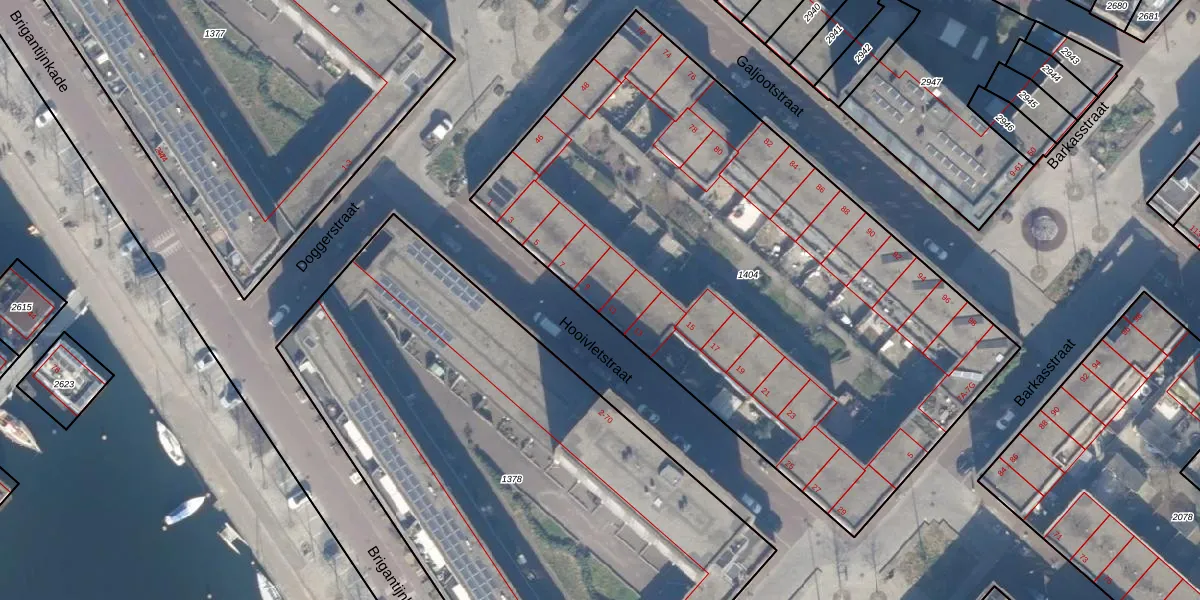 Hooivletstraat 9 is gelegen op kadastraal perceel ASD41AU1404. Deze kadastrale aanduiding is uniek en wordt gebruikt door het Kadaster om eigendomsrechten en andere zakelijke rechten vast te leggen. Het perceel maakt onderdeel uit van de kadastrale gemeente Amsterdam.