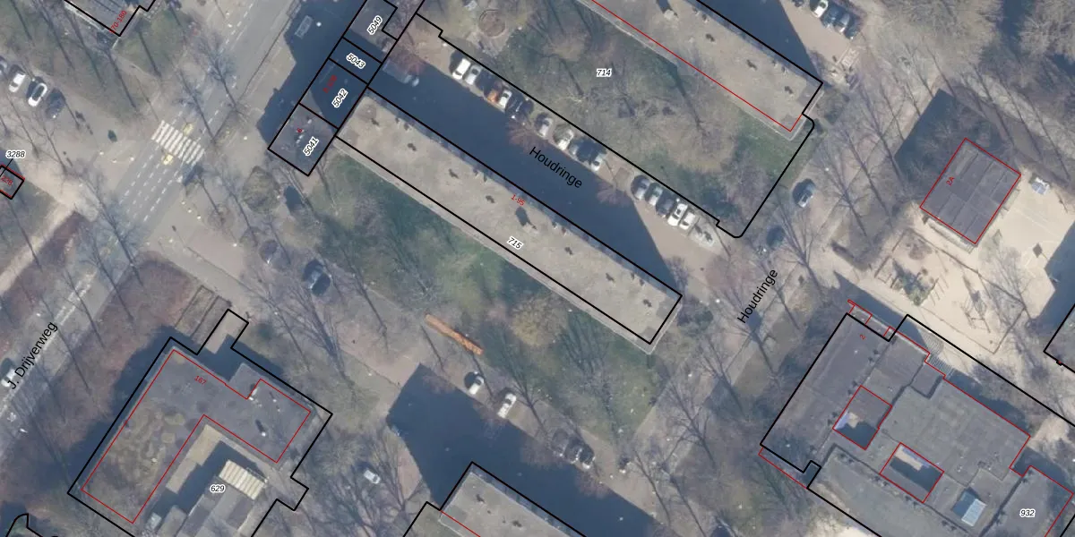 Het perceel waarop Houdringe 35 staat heeft een oppervlakte van 762 m². Dit is een groot perceel. De perceeloppervlakte wordt geregistreerd door het Kadaster. Gedetailleerde informatie over de maten van dit perceel kunt u vinden in het rapport Kadastrale kaart met maatvoering van Houdringe 35.