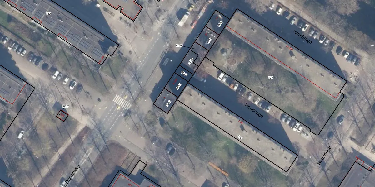 Het perceel waarop Houdringe 95 staat heeft een oppervlakte van 762 m². Dit is een groot perceel. De perceeloppervlakte wordt geregistreerd door het Kadaster. Gedetailleerde informatie over de maten van dit perceel kunt u vinden in het rapport Kadastrale kaart met maatvoering van Houdringe 95.