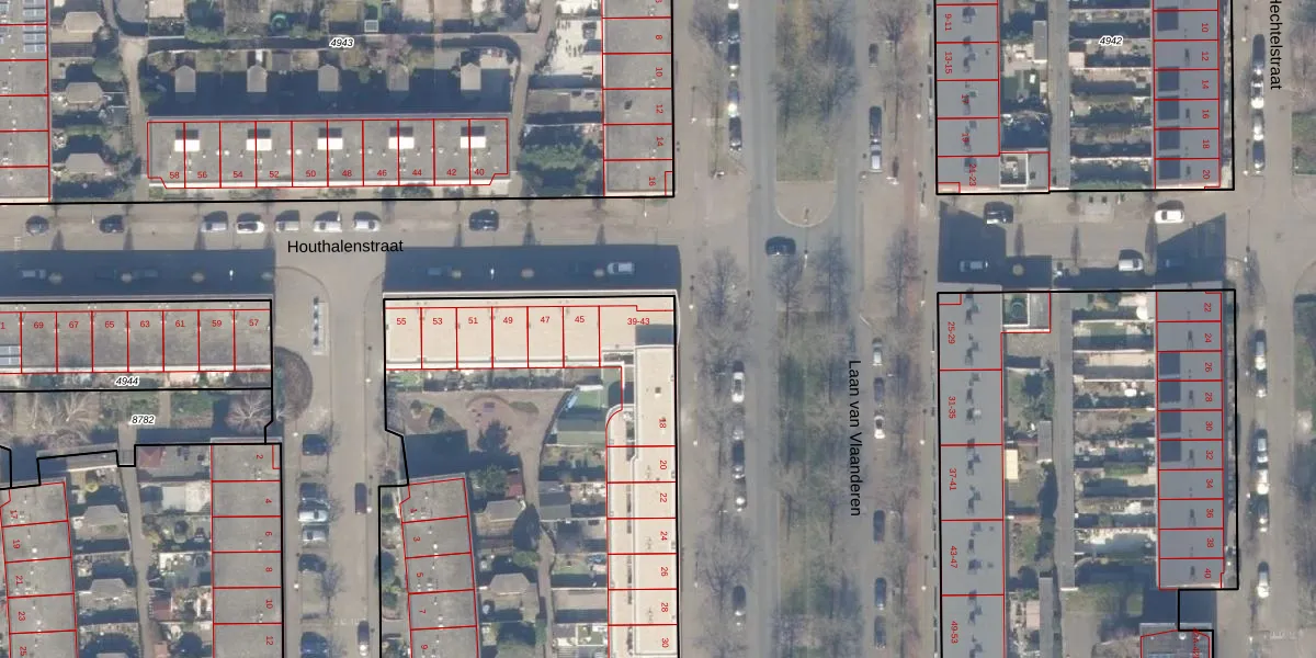 Het perceel waarop Houthalenstraat 39 staat heeft een oppervlakte van 5440 m². Dit is een zeer groot perceel. De perceeloppervlakte wordt geregistreerd door het Kadaster. Gedetailleerde informatie over de maten van dit perceel kunt u vinden in het rapport Kadastrale kaart met maatvoering van Houthalenstraat 39.