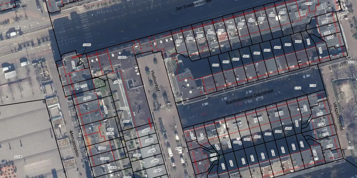 Het perceel waarop Hudsonhof 12 staat heeft een oppervlakte van 1780 m². Dit is een zeer groot perceel. De perceeloppervlakte wordt geregistreerd door het Kadaster. Gedetailleerde informatie over de maten van dit perceel kunt u vinden in het rapport Kadastrale kaart met maatvoering van Hudsonhof 12.