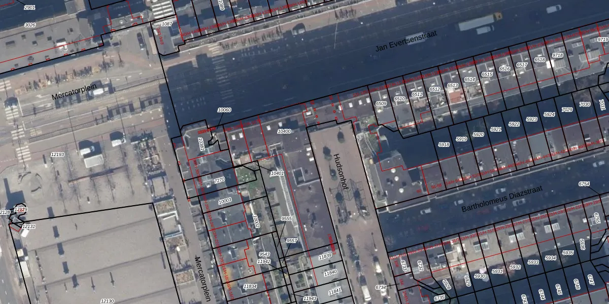 Het perceel waarop Hudsonhof 35 staat heeft een oppervlakte van 1780 m². Dit is een zeer groot perceel. De perceeloppervlakte wordt geregistreerd door het Kadaster. Gedetailleerde informatie over de maten van dit perceel kunt u vinden in het rapport Kadastrale kaart met maatvoering van Hudsonhof 35.