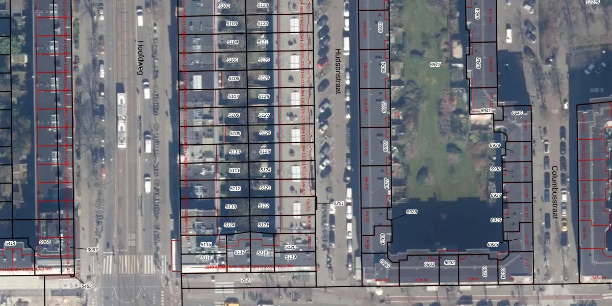 Hudsonstraat 13-2 is gelegen op kadastraal perceel STN02C5125. Deze kadastrale aanduiding is uniek en wordt gebruikt door het Kadaster om eigendomsrechten en andere zakelijke rechten vast te leggen. Het perceel maakt onderdeel uit van de kadastrale gemeente Sloten Noord-Holland.