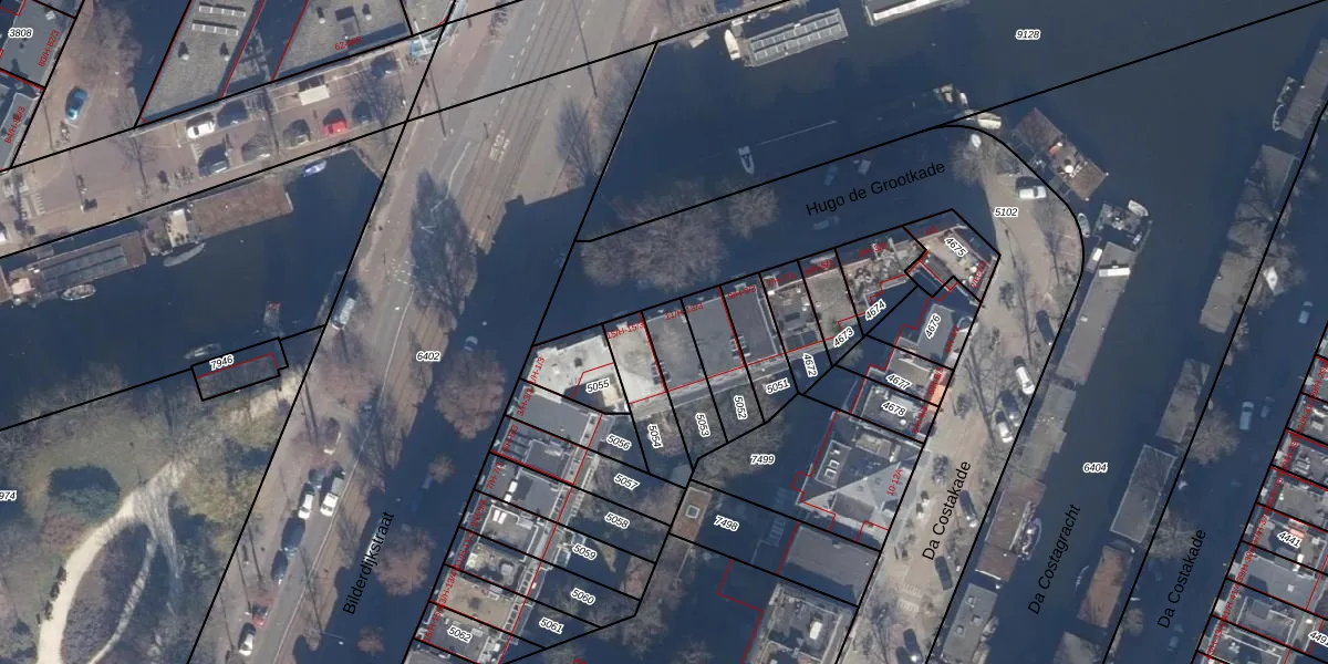 Hugo de Grootkade 13-2 is gelegen op kadastraal perceel ASD13Q5053. Deze kadastrale aanduiding is uniek en wordt gebruikt door het Kadaster om eigendomsrechten en andere zakelijke rechten vast te leggen. Het perceel maakt onderdeel uit van de kadastrale gemeente Amsterdam.
