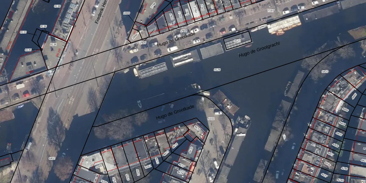 Hugo de Grootkade 131 is gelegen op kadastraal perceel ASD13Q9128. Deze kadastrale aanduiding is uniek en wordt gebruikt door het Kadaster om eigendomsrechten en andere zakelijke rechten vast te leggen. Het perceel maakt onderdeel uit van de kadastrale gemeente Amsterdam.