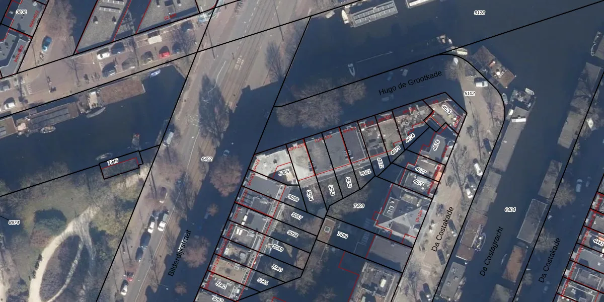 Hugo de Grootkade 15-2 is gelegen op kadastraal perceel ASD13Q5054. Deze kadastrale aanduiding is uniek en wordt gebruikt door het Kadaster om eigendomsrechten en andere zakelijke rechten vast te leggen. Het perceel maakt onderdeel uit van de kadastrale gemeente Amsterdam.