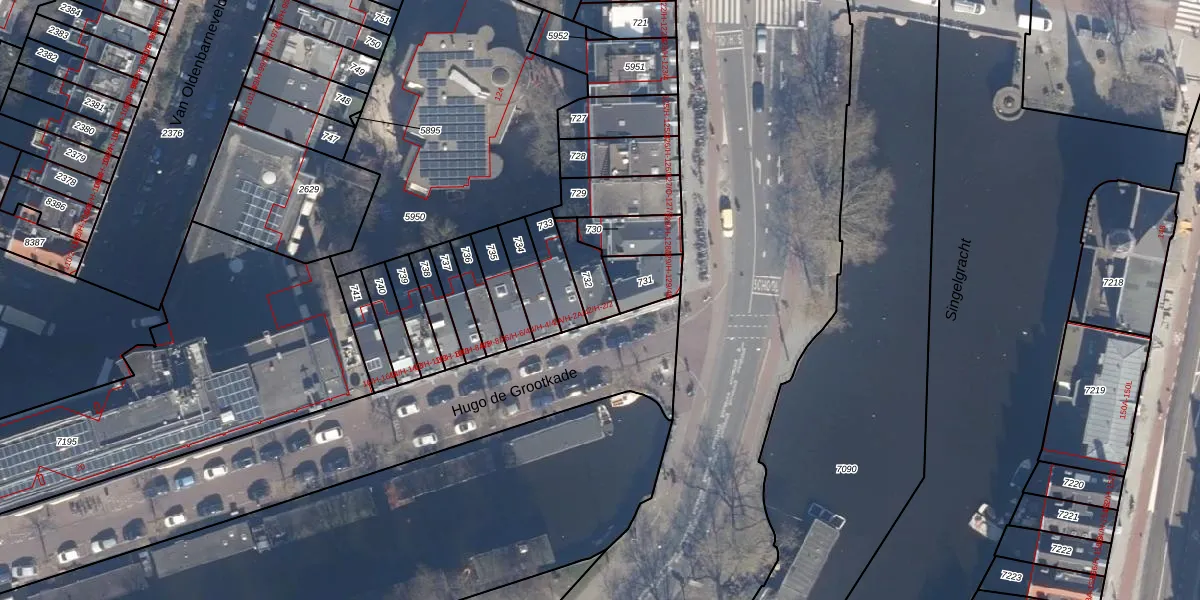 Hugo de Grootkade 2-1 is gelegen op kadastraal perceel ASD13Q732. Deze kadastrale aanduiding is uniek en wordt gebruikt door het Kadaster om eigendomsrechten en andere zakelijke rechten vast te leggen. Het perceel maakt onderdeel uit van de kadastrale gemeente Amsterdam.