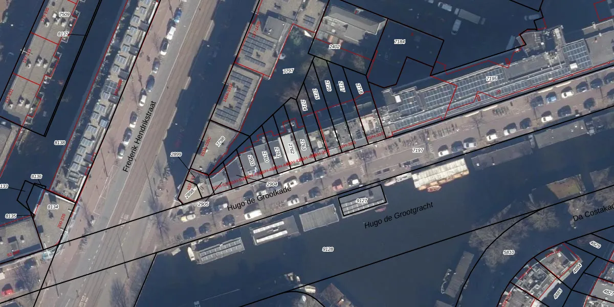 Hugo de Grootkade 40-3 is gelegen op kadastraal perceel ASD13Q2763. Deze kadastrale aanduiding is uniek en wordt gebruikt door het Kadaster om eigendomsrechten en andere zakelijke rechten vast te leggen. Het perceel maakt onderdeel uit van de kadastrale gemeente Amsterdam.