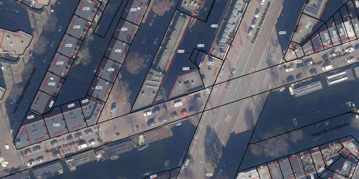 Hugo de Grootkade 66-E is gelegen op kadastraal perceel ASD13Q8138. Deze kadastrale aanduiding is uniek en wordt gebruikt door het Kadaster om eigendomsrechten en andere zakelijke rechten vast te leggen. Het perceel maakt onderdeel uit van de kadastrale gemeente Amsterdam.