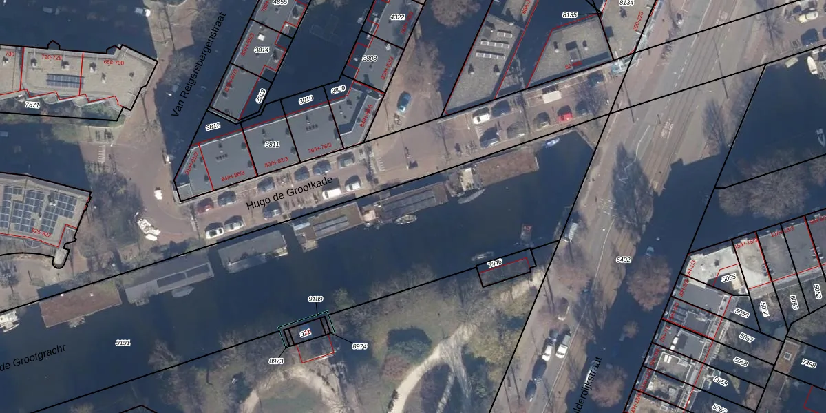 Hugo de Grootkade 76-W is gelegen op kadastraal perceel ASD13Q9191. Deze kadastrale aanduiding is uniek en wordt gebruikt door het Kadaster om eigendomsrechten en andere zakelijke rechten vast te leggen. Het perceel maakt onderdeel uit van de kadastrale gemeente Amsterdam.