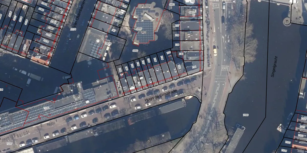 Hugo de Grootkade 8-O is gelegen op kadastraal perceel ASD13Q736. Deze kadastrale aanduiding is uniek en wordt gebruikt door het Kadaster om eigendomsrechten en andere zakelijke rechten vast te leggen. Het perceel maakt onderdeel uit van de kadastrale gemeente Amsterdam.