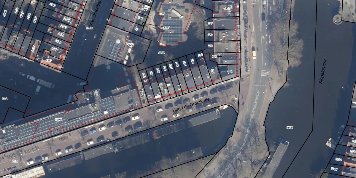 Hugo de Grootkade 8-A-1 is gelegen op kadastraal perceel ASD13Q737. Deze kadastrale aanduiding is uniek en wordt gebruikt door het Kadaster om eigendomsrechten en andere zakelijke rechten vast te leggen. Het perceel maakt onderdeel uit van de kadastrale gemeente Amsterdam.