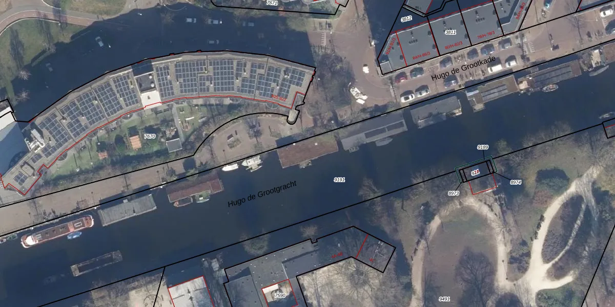 Hugo de Grootkade 88-W is gelegen op kadastraal perceel ASD13Q9191. Deze kadastrale aanduiding is uniek en wordt gebruikt door het Kadaster om eigendomsrechten en andere zakelijke rechten vast te leggen. Het perceel maakt onderdeel uit van de kadastrale gemeente Amsterdam.