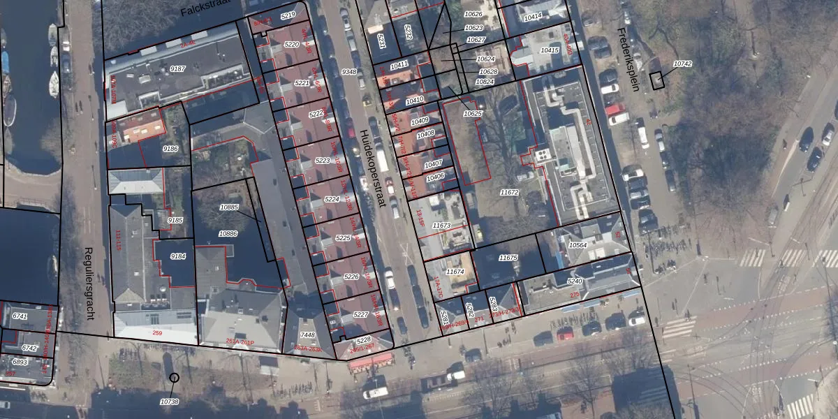 Huidekoperstraat 13 is gelegen op kadastraal perceel ASD06I11673. Deze kadastrale aanduiding is uniek en wordt gebruikt door het Kadaster om eigendomsrechten en andere zakelijke rechten vast te leggen. Het perceel maakt onderdeel uit van de kadastrale gemeente Amsterdam.