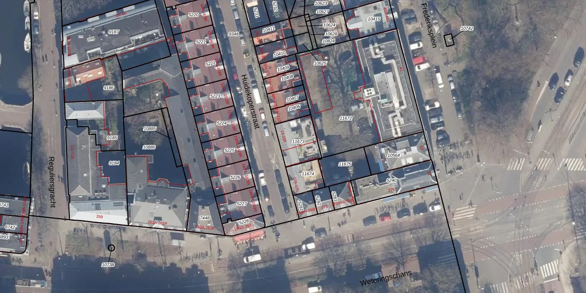 Het perceel waarop Huidekoperstraat 15-E staat heeft een oppervlakte van 195 m². Dit is een middelgroot perceel. De perceeloppervlakte wordt geregistreerd door het Kadaster. Gedetailleerde informatie over de maten van dit perceel kunt u vinden in het rapport Kadastrale kaart met maatvoering van Huidekoperstraat 15-E.