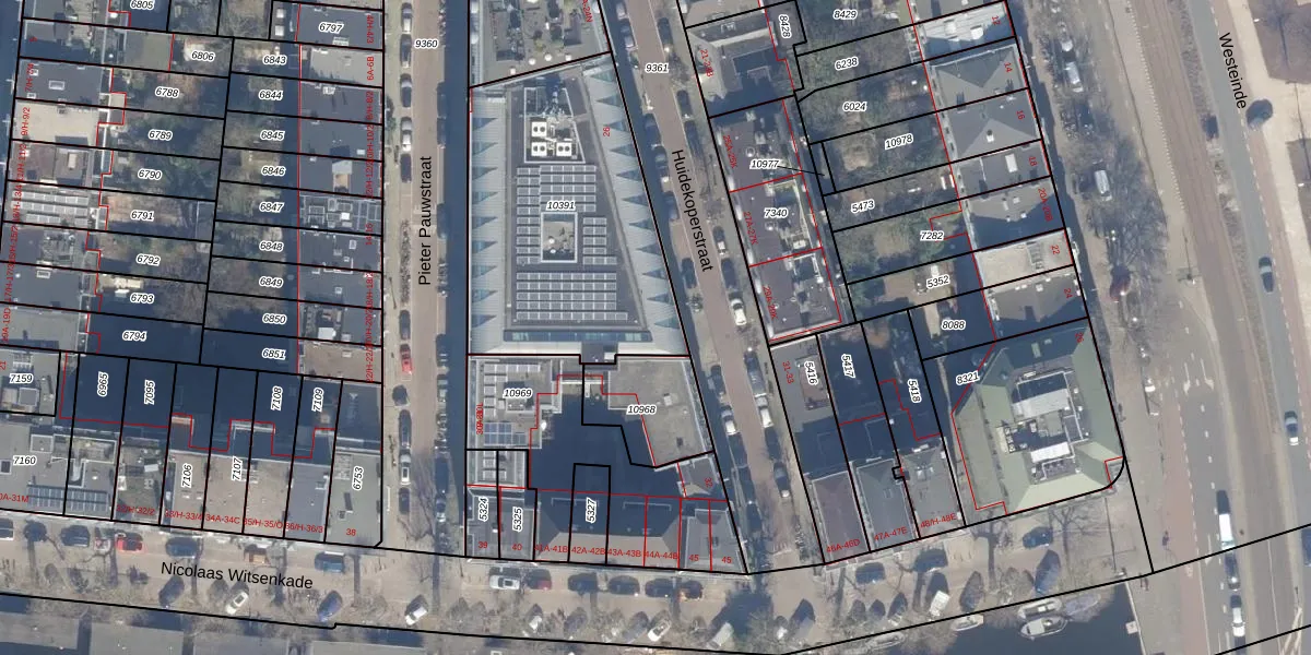 Het adres ligt op het perceel ASD06-I-10391, dat zich in de kadastrale gemeente Amsterdam bevindt. Het perceel is met 1235 m² relatief groot. Het gemiddelde ligt in de kadastrale gemeente Amsterdam op 313,48 m². De grootste perceeloppervlakte in de kadastrale gemeente is 4,8 ha. De kleinste oppervlakte bedraagt 0 m². Er zijn 2 adressen aanwezig op het perceel. In de Basisregistratie Kadaster (BRK) werden de grenzen van het perceel geregistreerd op 20-12-2006.