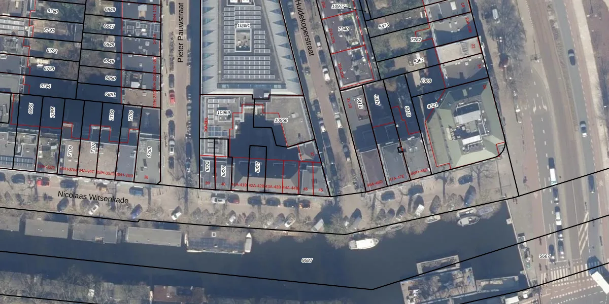 Het adres is gelegen op perceel 10969 in de sectie I en de kadastrale gemeente Amsterdam. De kadastrale aanduiding is aldus ASD06-I-10969. De gemiddelde perceeloppervlakte in de kadastrale gemeente Amsterdam is 313,48 m². Dit perceel is met zijn 715 m² dus groter dan gemiddeld. Het grootste perceel in de kadastrale gemeente is 4,8 ha. Het kleinste perceel heeft een oppervlakte van 0 m². Op het perceel liggen in totaal 20 adressen. De huidige grenzen van het perceel zijn digitaal in de Basisregistratie Kadaster (BRK) geregistreerd op 20-12-2006.