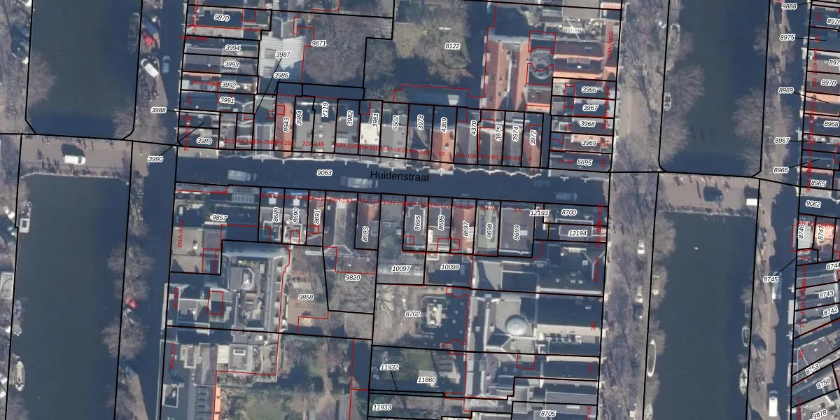 Huidenstraat 13-3 is gelegen op kadastraal perceel ASD06I8695. Deze kadastrale aanduiding is uniek en wordt gebruikt door het Kadaster om eigendomsrechten en andere zakelijke rechten vast te leggen. Het perceel maakt onderdeel uit van de kadastrale gemeente Amsterdam.